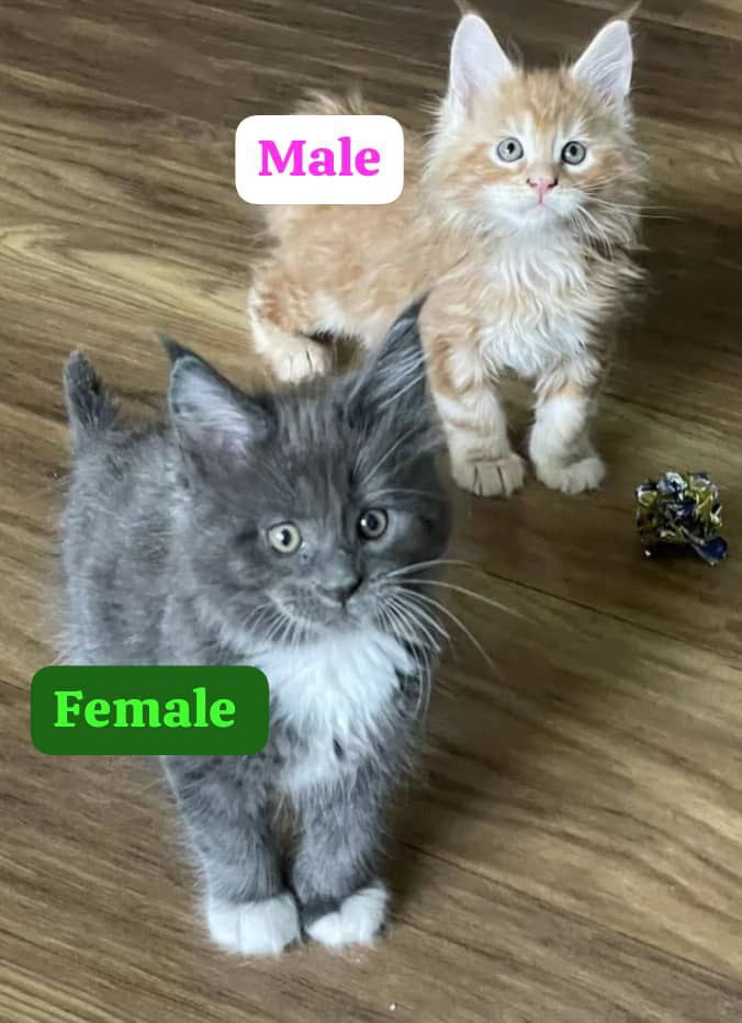 • Stunning Appearance: With their shaggy, water-resistant coats, tufted ears, and bushy raccoon-like tails, Maine Coon kittens have a distinctive wild look combined with a sweet expression . Their coats come in various colors and patterns, making each kitten unique .